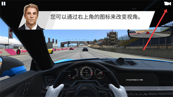 3、点击右上角的图标,切换游戏的视角,以便更清晰地观察赛道和车辆的行驶状态。