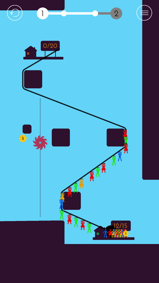 3、连接完成后,点击屏幕任意处,小人就会顺着绳索滑落,到达终点。