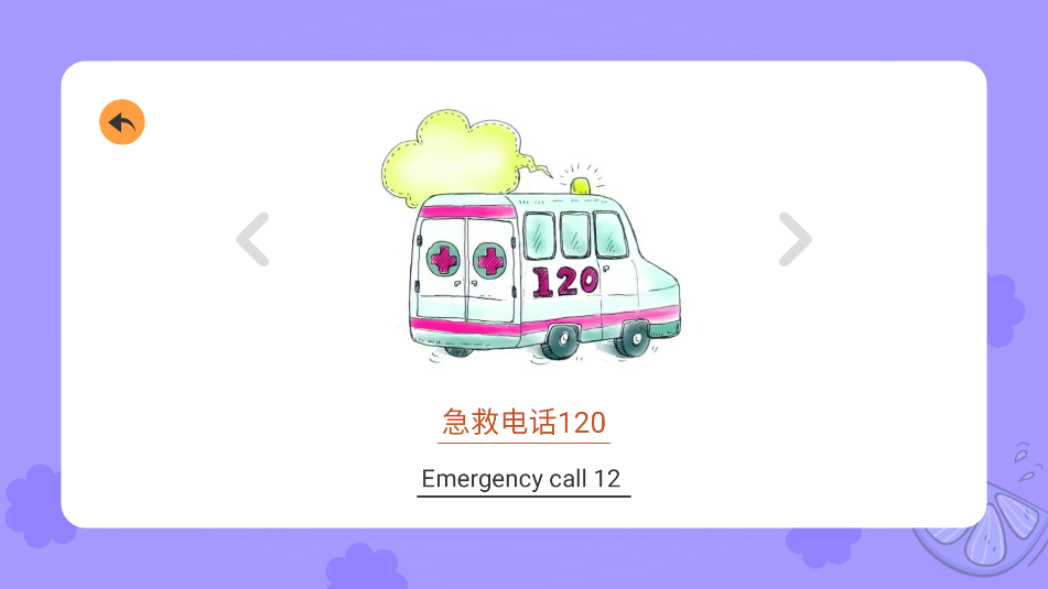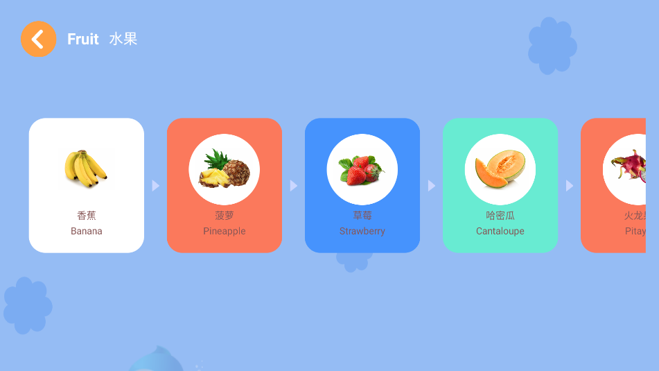 3、点击进入,可以自动发出水果的名称,点击下方的单词会发出英文发音。
