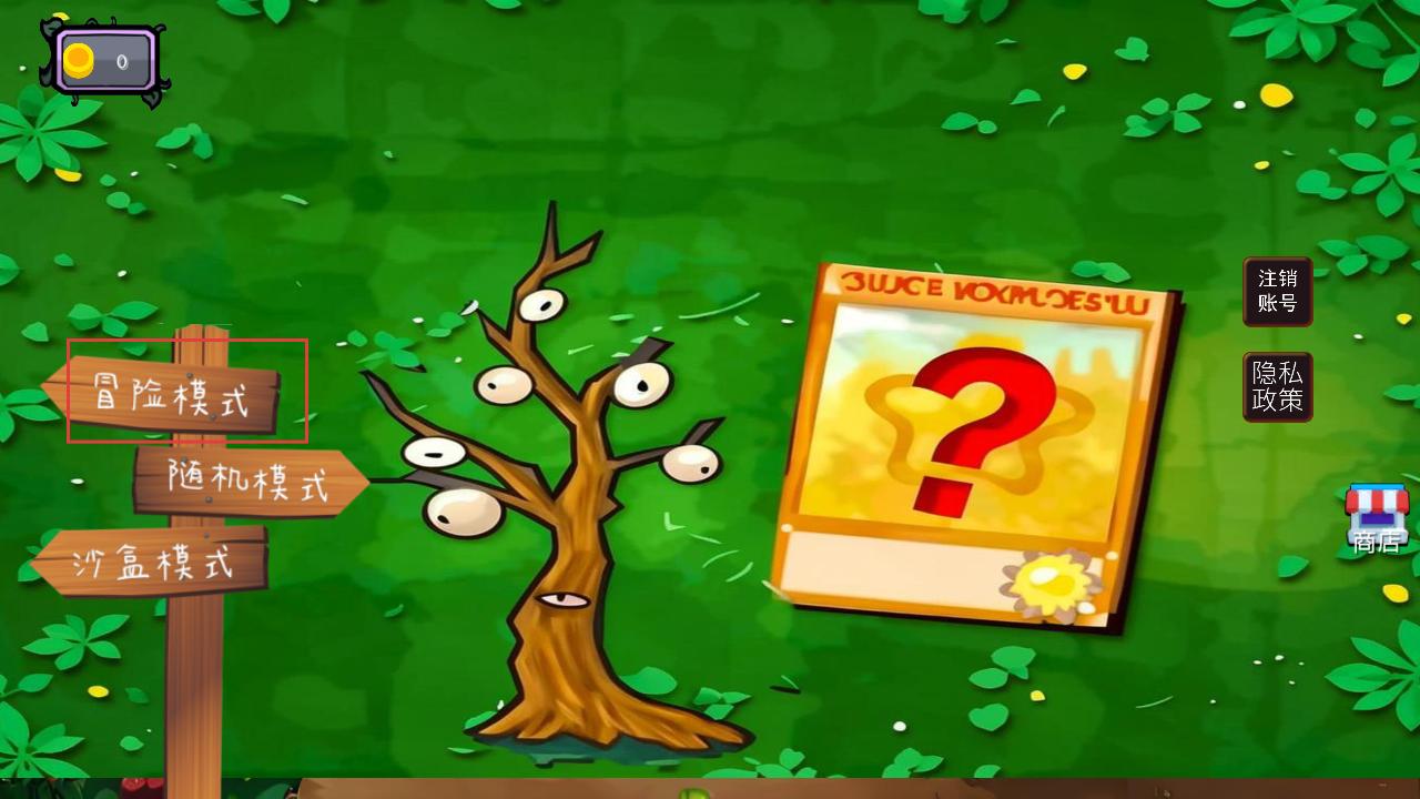 1、进入游戏,能看到冒险模式、随机模式、沙盒模式等选项,选择冒险模式,开启塔防挑战之旅。