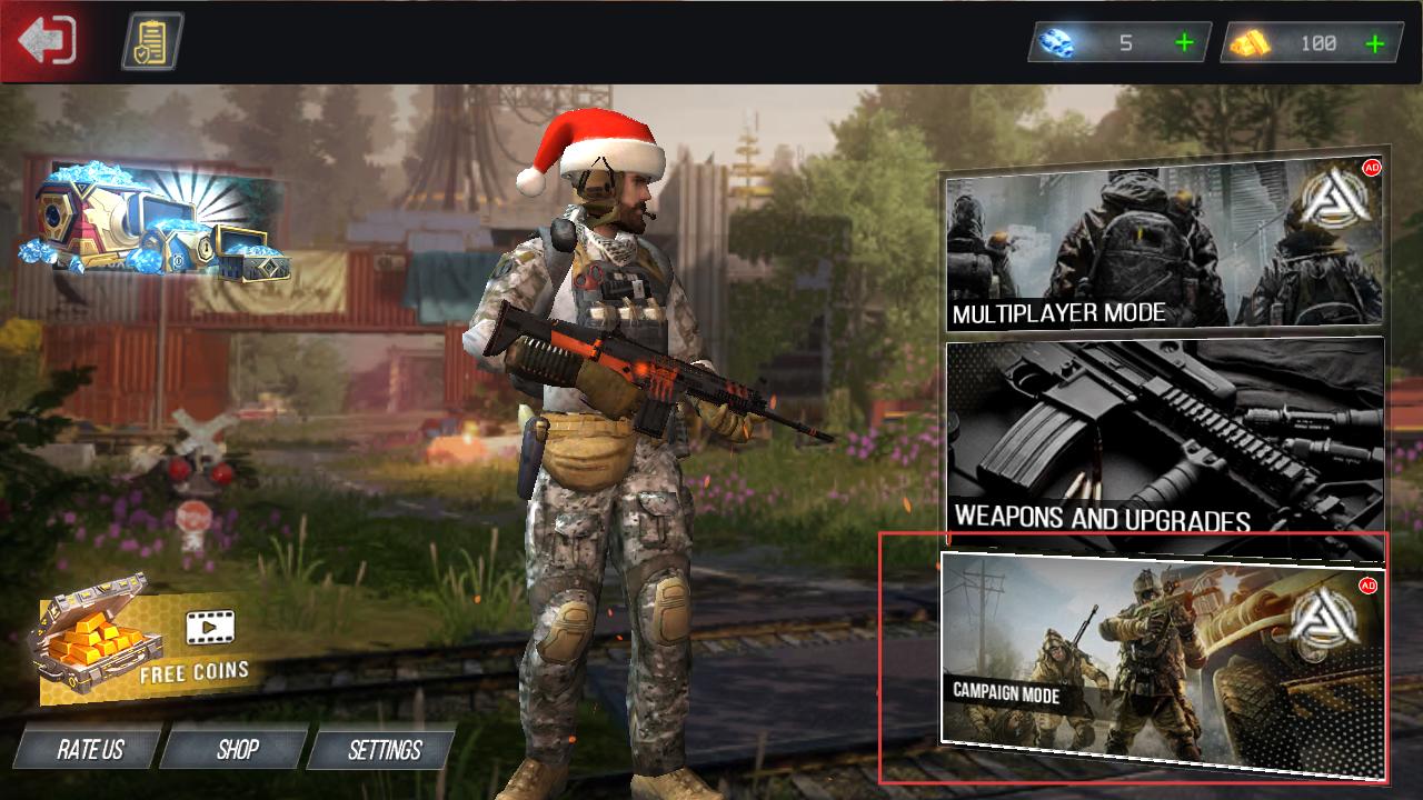 1、进入游戏界面,可选择不同模式,点击战役模式,即可开启军事射击任务,投身战斗。