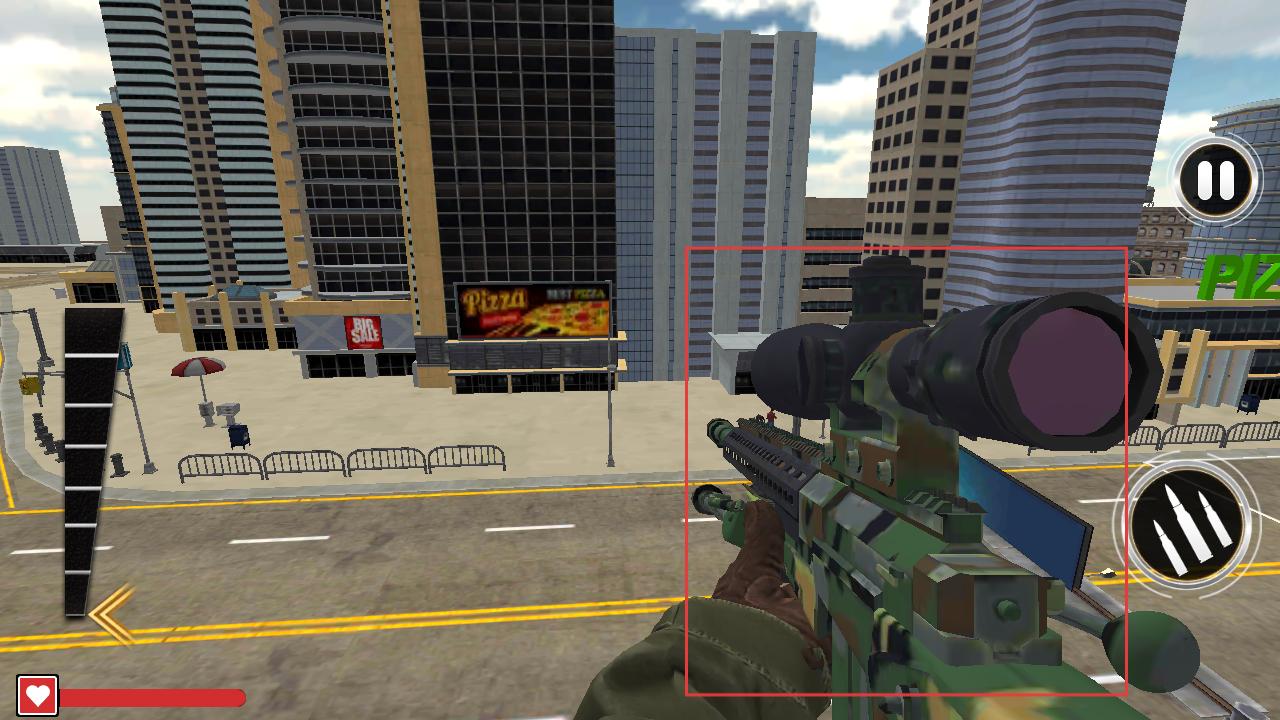 2、在城市等场景中操控狙击枪,瞄准目标,利用狙击枪的瞄准镜,精准锁定要射击的对象。