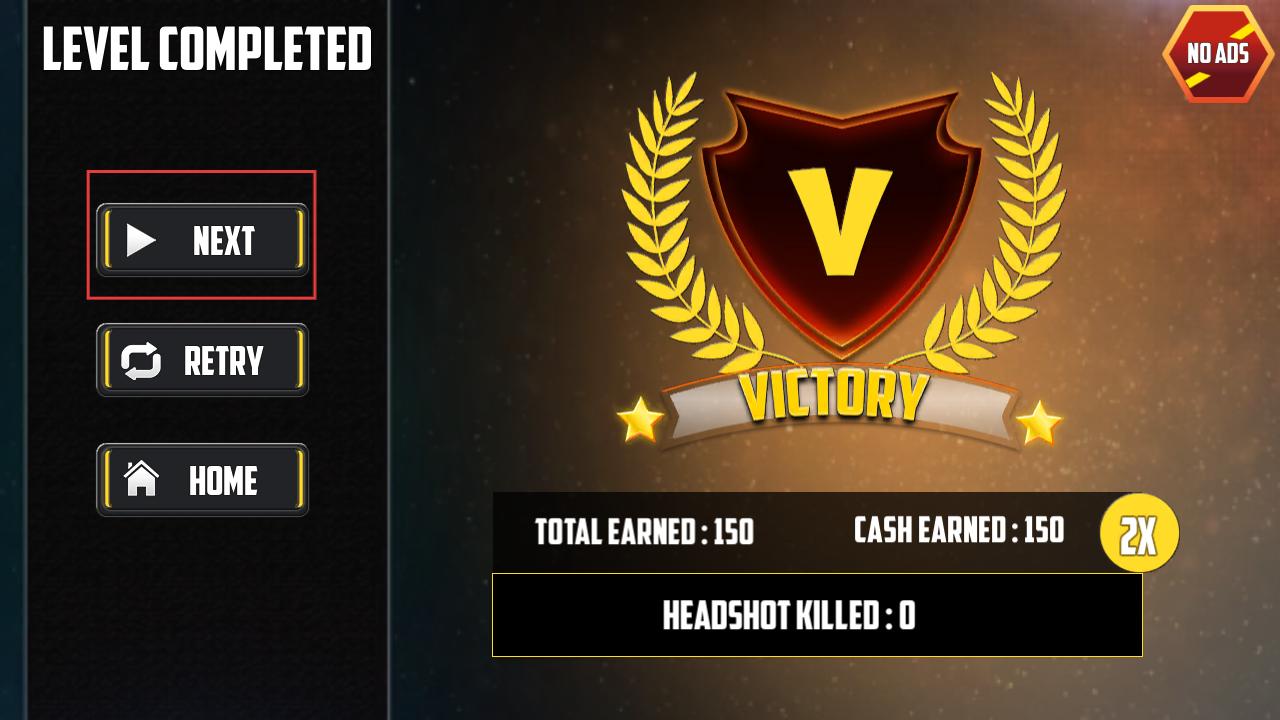 4、成功完成关卡后,会出现LEVEL COMPLETED的胜利界面,显示获得的收益等信息,点击NEXT按钮,可继续挑战下一个关卡。