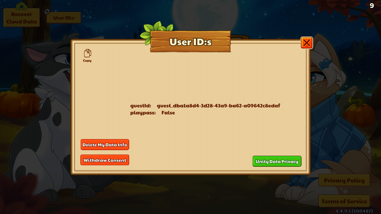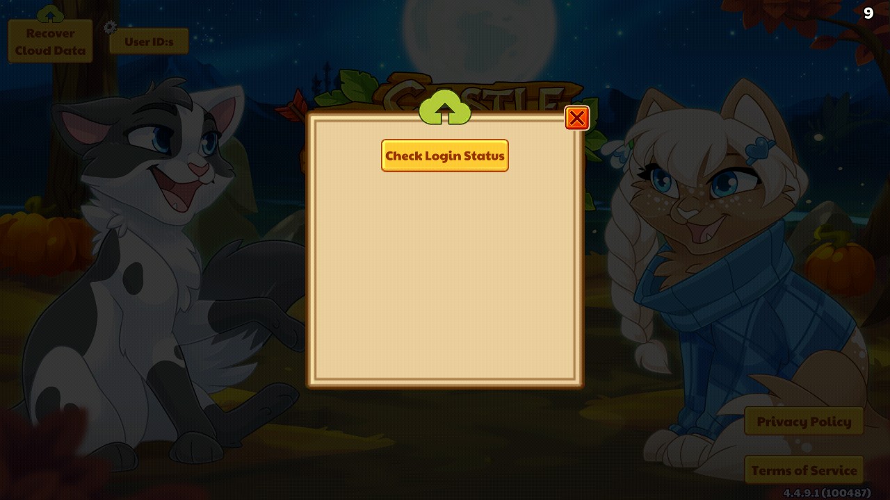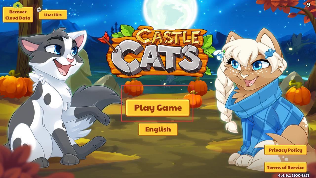1、进入游戏,首先看到带有两只猫咪角色的标题界面,有Play Game等按钮,点击可开启后续冒险流程,准备开启奇幻的猫咪冒险。