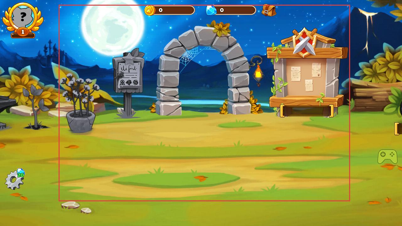 4、资源下载完毕,就会进入游戏主场景,能看到城堡、公告板等元素,上方显示金币、钻石等资源数量,可开始探索冒险。