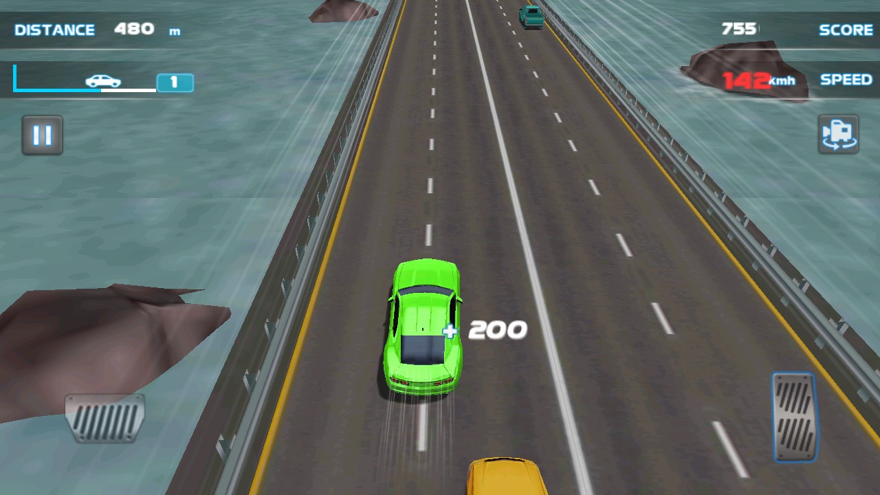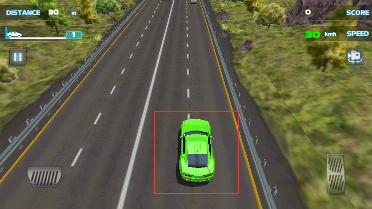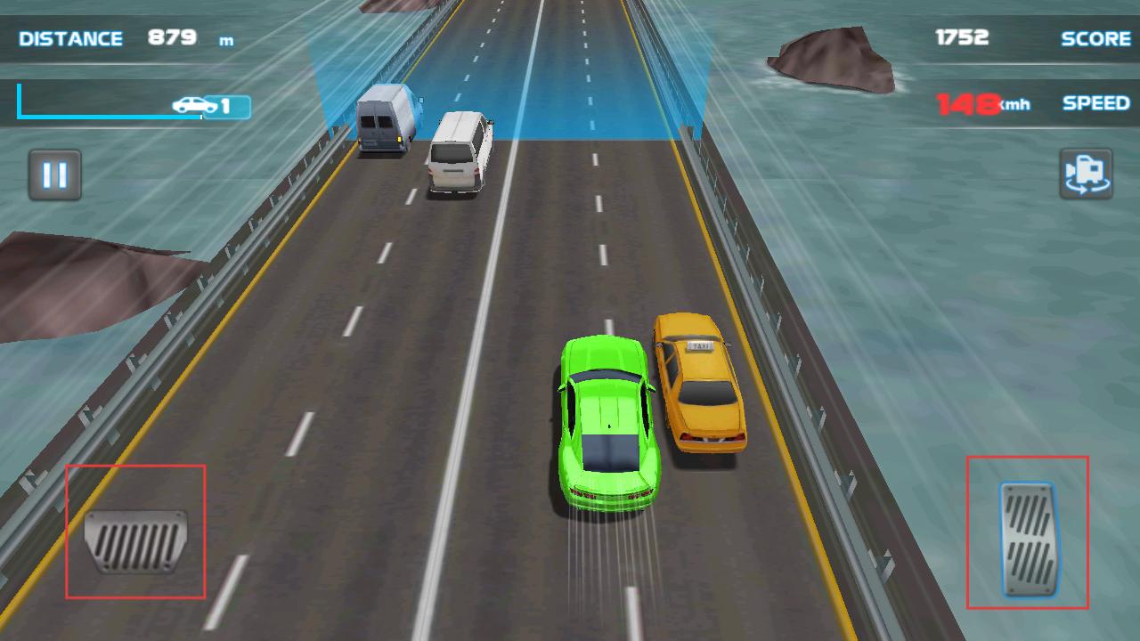 3、行驶中可通过点击左右两侧的踏板来控制赛车减速或加速,遇到其他车辆时,灵活操作完成超车。