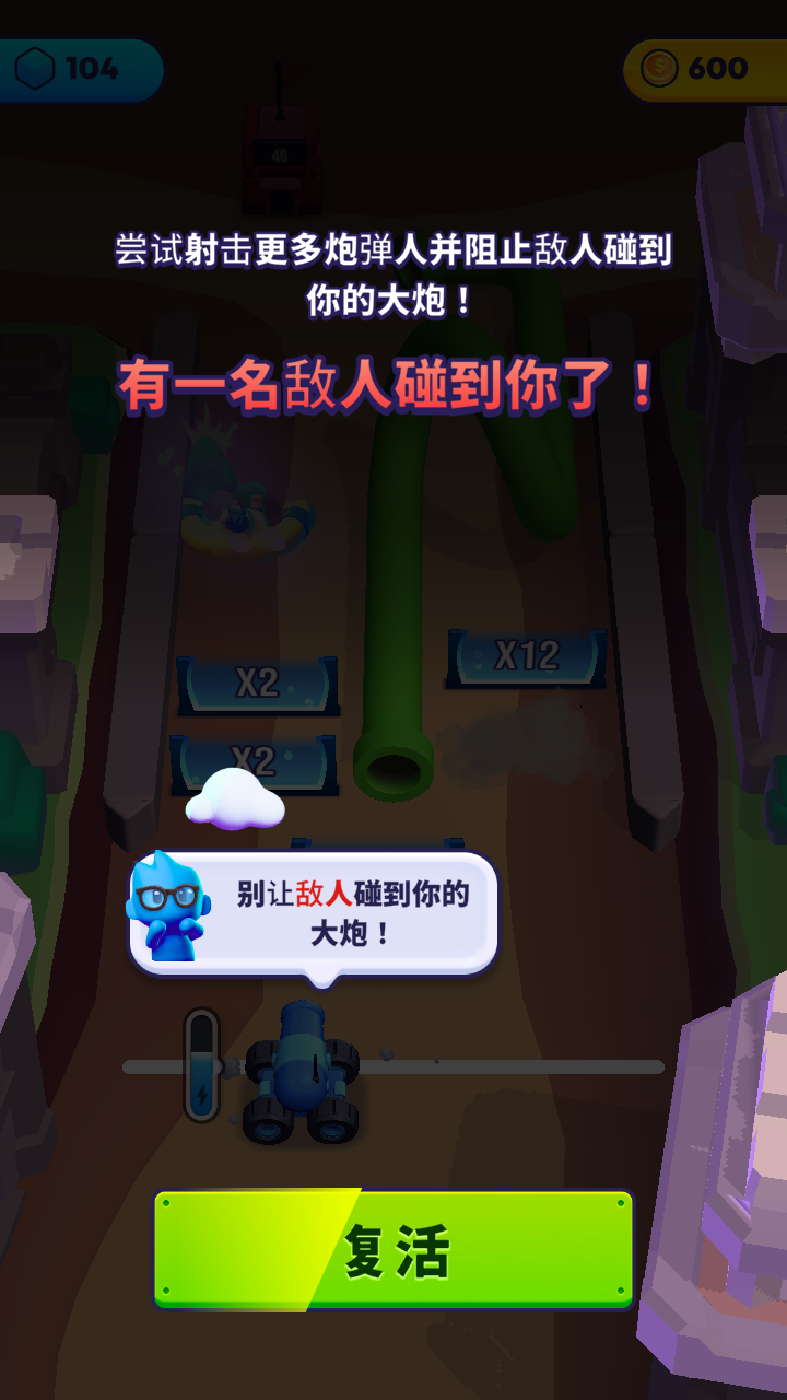 1、通过滑动控制炮台发射角度,精确瞄准场景中的3倍或5倍传送门。注意避开红色的减倍陷阱门,否则会导致单位数量锐减。