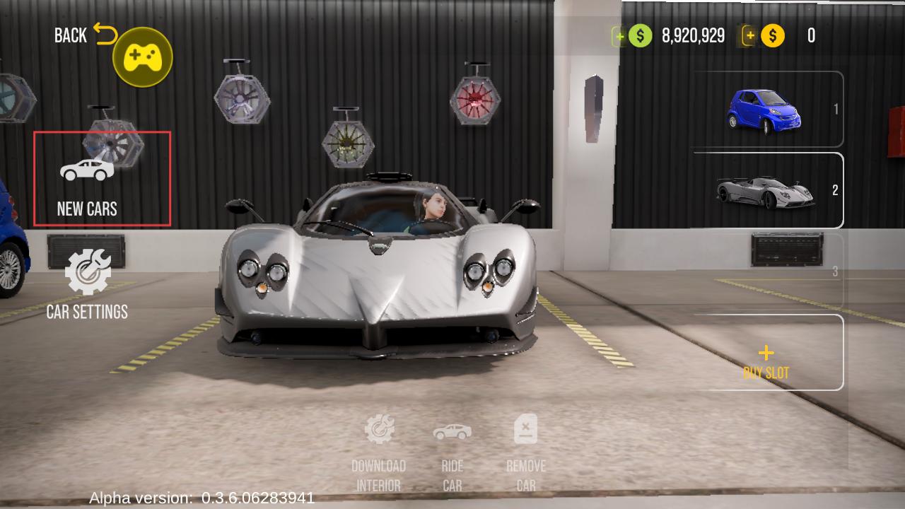 1、进入车辆界面可见NEW CARS等选项,可点击查看新车,准备挑选并购入适合的车型,开启驾驶与停车的多样体验。