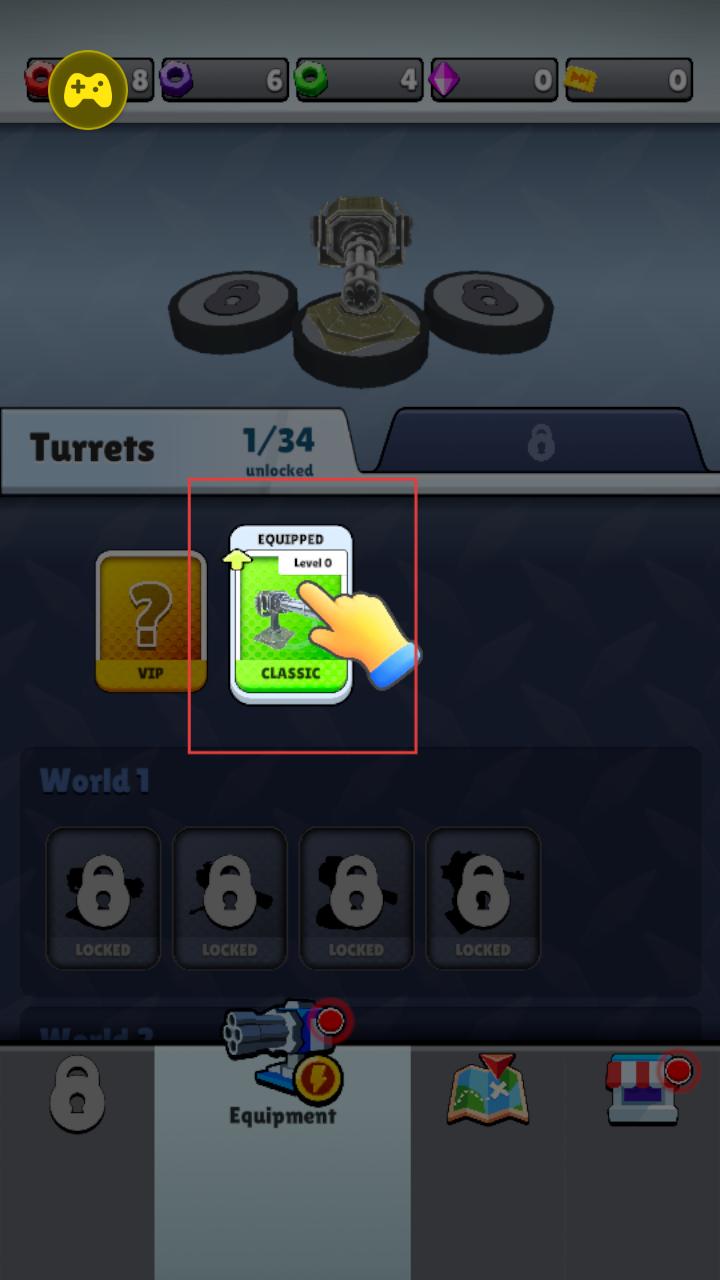1、点击装备经典炮塔,开启塔防战斗的炮塔部署环节,为后续抵御敌人进攻做好准备,开启策略防御之旅。
