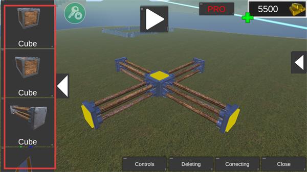 1、进入建造界面,左侧有多种方块等建造素材可选,挑选合适素材后,即可开始组装战车、火炮等战争机器,开启沙盒创造之旅。