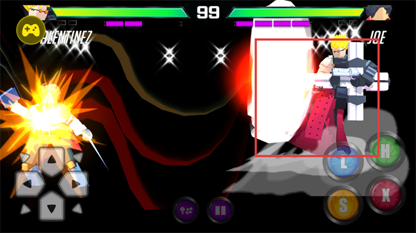 1、战斗时点击L、H、S、X等按钮发动攻击,可触发连击,如2HIT COMBO,让对战充满打击感。
