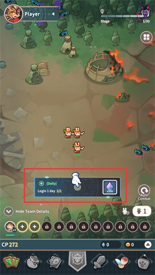 2、在营地可领取每日登录奖励,查看团队详情,同时熟悉界面功能,为组建动物英雄军团做准备。