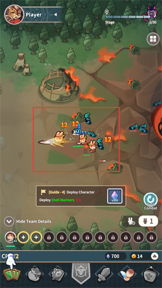 4、遭遇敌人时部署特色角色如护盾战士,参与自动战斗,同时把握技能释放时机,推进冒险进程,检验阵容战力。