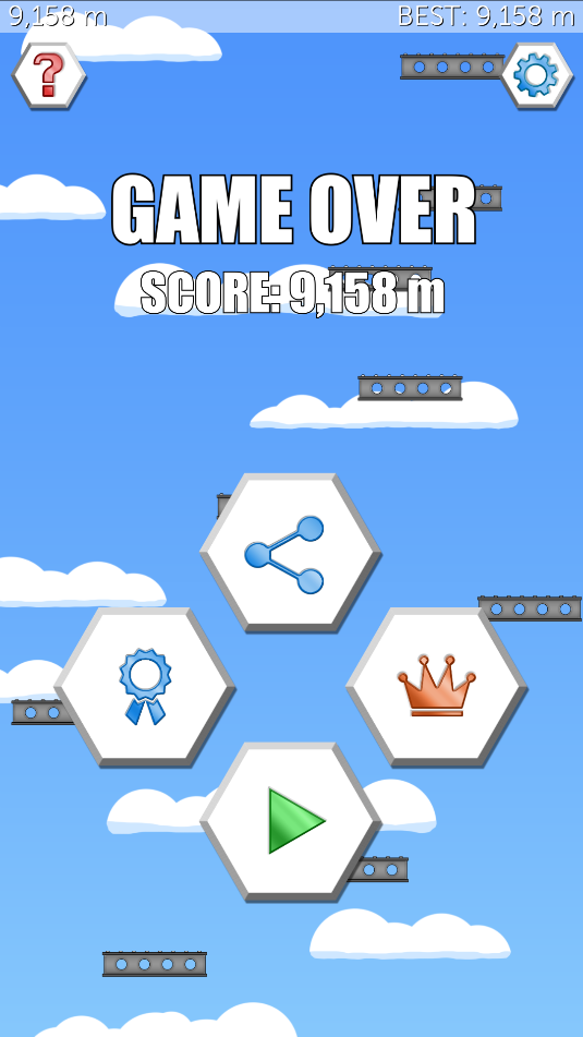 2、采用垂直滚动模式,融入火箭助推、星际探索元素,搭配障碍规避与分数比拼维度。