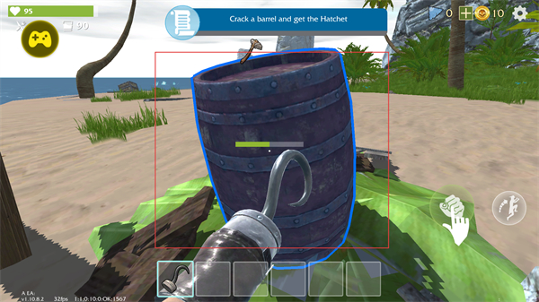 3、找到荒岛中的木桶,用钩子敲开,获取道具,推进资源收集,为荒岛生存积累物资,应对后续求生需求。