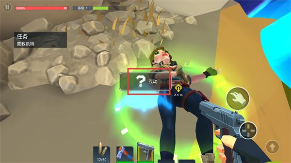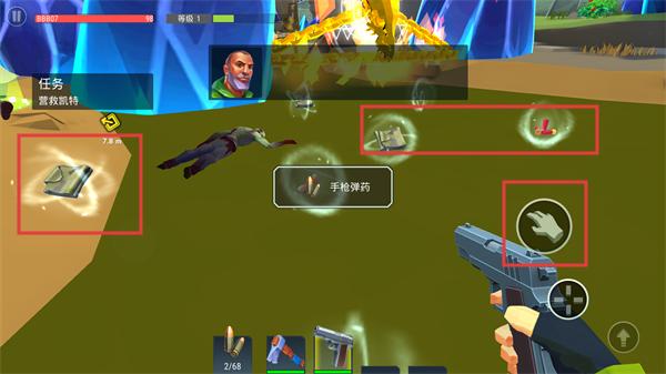 1、接到营救凯特的任务,场景中可收集手枪弹药和各类物品,点击手势按钮拾取,收集资源同时推进任务,为后续营救和战斗做准备。