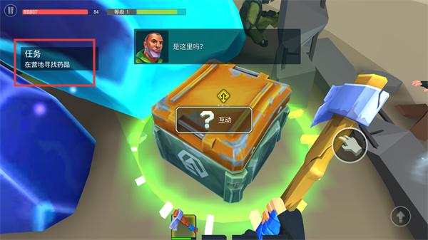 4、接到在营地寻找饰品的任务,找到带有互动提示的箱子,点击互动开启,获取饰品,完成任务,提升角色能力,助力后续生存冒险。