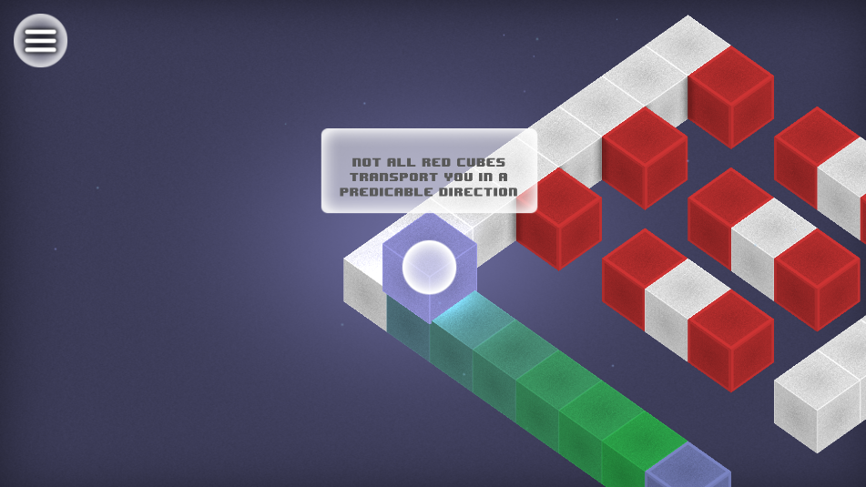 2、方块移动过程中持续翻滚并变换颜色,已染色方块再次经过会变为黑色,直接影响关卡最终分数。