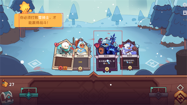 3、操控己方角色卡牌,击败敌方的雪骑士单位,完成战斗目标以推进对战进度。