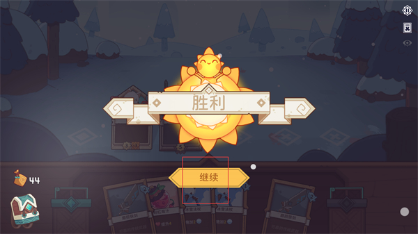 4、战斗胜利后点击继续按钮,结束当前对战流程,进入后续的冒险或资源结算环节。