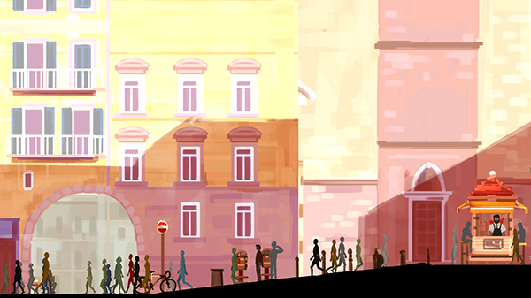2、采用油画风格美术设计,画面精美治愈,还原意大利古老建筑与不同时代场景风貌。