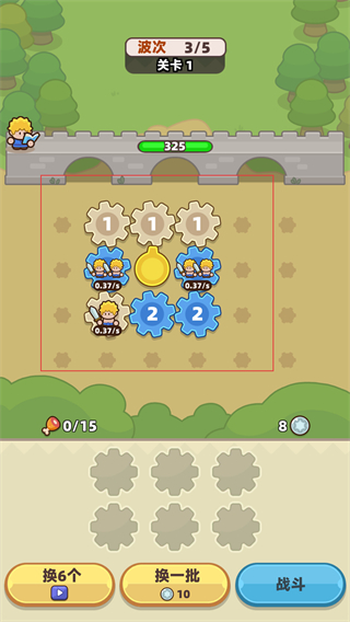 1、在场景中摆放不同等级的齿轮,借助齿轮效果召唤对应兵种,完成兵力部署,为战斗做好准备。