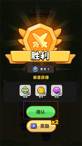 3、战斗胜利后点击确认按钮,领取对应的经验、金币和钻石奖励,积累资源用于后续养成。