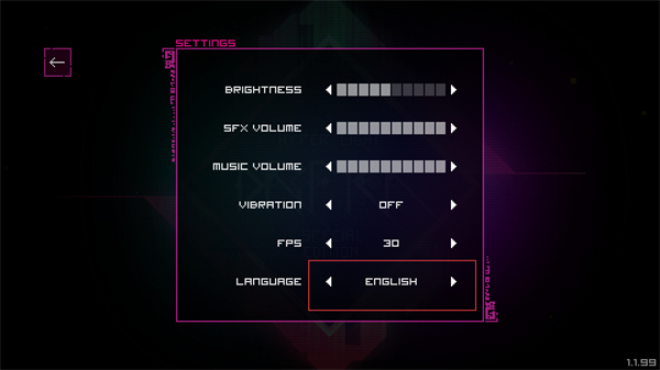 4、操作LANGUAGE对应的切换按钮,将其调整为简体中文,完成游戏语言的设置然后返回。