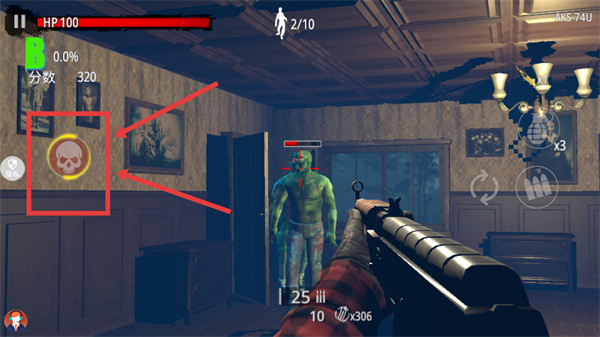 2、点击左侧的骷髅图标释放对应技能,该技能会对目标区域的僵尸造成攻击,提升清敌效率。