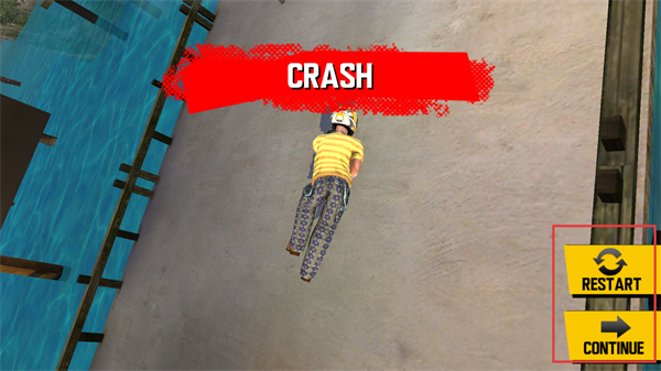4、若驾驶中出现CRASH情况,点击RESTART按钮重新开始当前关卡,继续进行摩托驾驶挑战。