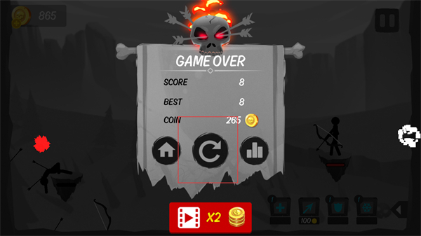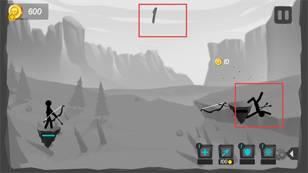 3、持续攻击敌方直至其血量耗尽,敌方火柴人会从平台掉落,同时获得对应的金币奖励。