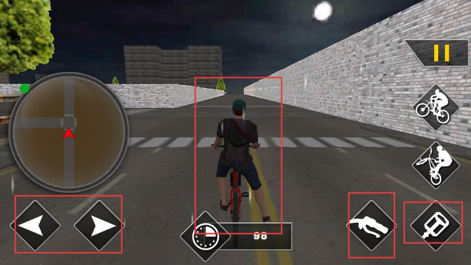 2、在赛道骑行时,利用左侧方向按钮控制自行车转向,右侧相关按键可让自行车加速,在道路上灵活穿梭。
