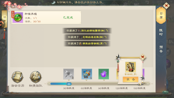 3、做日常攒资源:查看世界任务详情,完成运镖、采集等,积累积分换道具。