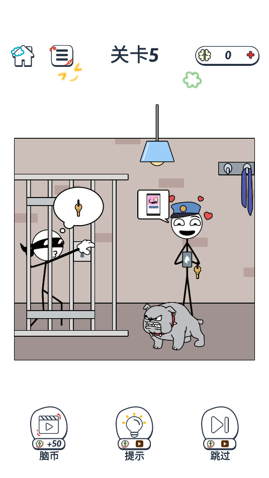 核心为偷取宝物,需规避宝物主人视线,借环境与机关绕过障碍完成任务。体验上,以黑色幽默风格平衡烧脑与休闲,解谜常现意外效果,完成挑战有丰富奖励,支持离线游玩,遇难题可求助朋友,便利性与互动性兼具。设计方面,采用火柴人简笔画风格,关卡含大量诡计与陷阱,场景涵盖生活化场所,难度随进程逐步提升,融合逃脱、脑力测试元素,玩法多元且考验观察与思维能力。