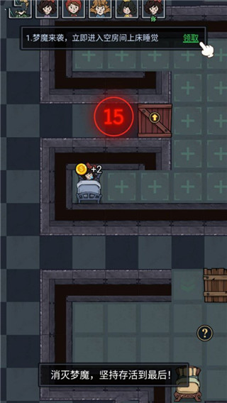 1、点击屏幕建造建筑、升级设施,点击维修按钮修复房门,猛鬼侧滑动控制移动与攻击,易上手。