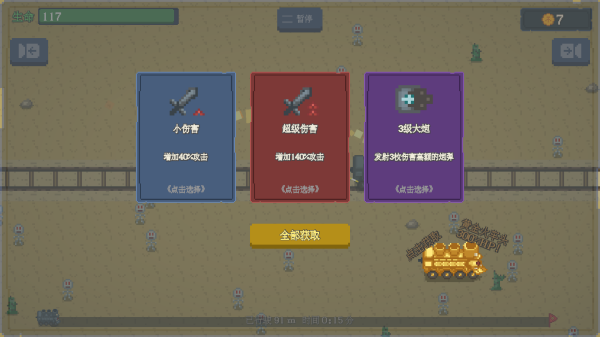 2、技能选择优先级:加子弹/伤害>血量上限>防御,治疗塔建议暂不购买。