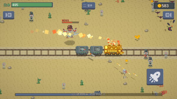 《无限列车》是一款末日废土题材的肉鸽射击手游。玩家驾驶装甲列车穿梭黄沙废墟,抵御畸变怪物侵袭,通过收集资源升级炮台与车厢。地图、资源点全随机生成,搭配昼夜交替机制,每趟旅程都充满未知。核心玩法围绕“战斗-收集-升级”循环,融合策略搭配与生存挑战,适合碎片时间体验。