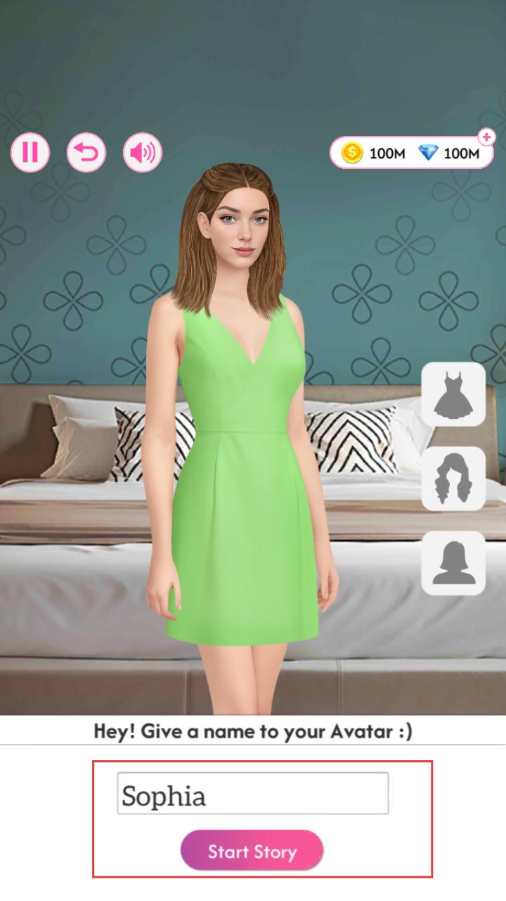 3、可给avatar命名,还能在界面中选择服饰、发型、形象等,打造专属角色后点击Start Story开启故事。