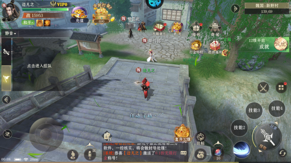 1、千人同屏国战:跨服阵营厮杀,争夺昆仑圣境与凌霄城,战术配合决定胜负与资源掠夺。