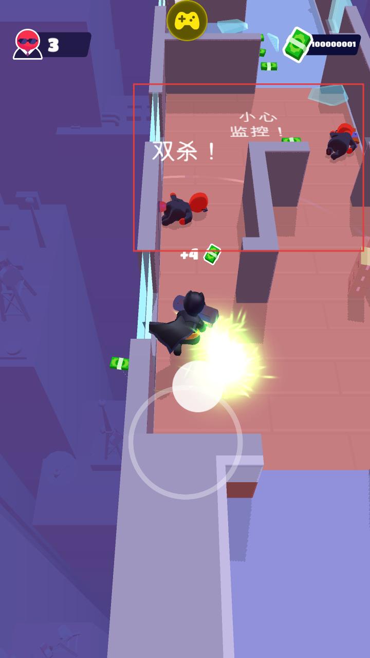 3、战斗时可击杀敌人,出现双杀提示,同时注意监控区域,成功击败敌人后能获取金币奖励,提升闯关收益。