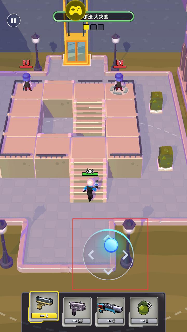 1、点击屏幕任意位置进行移动,滑动控制武器瞄准方向,长按激活精确瞄准模式提升射击命中率。