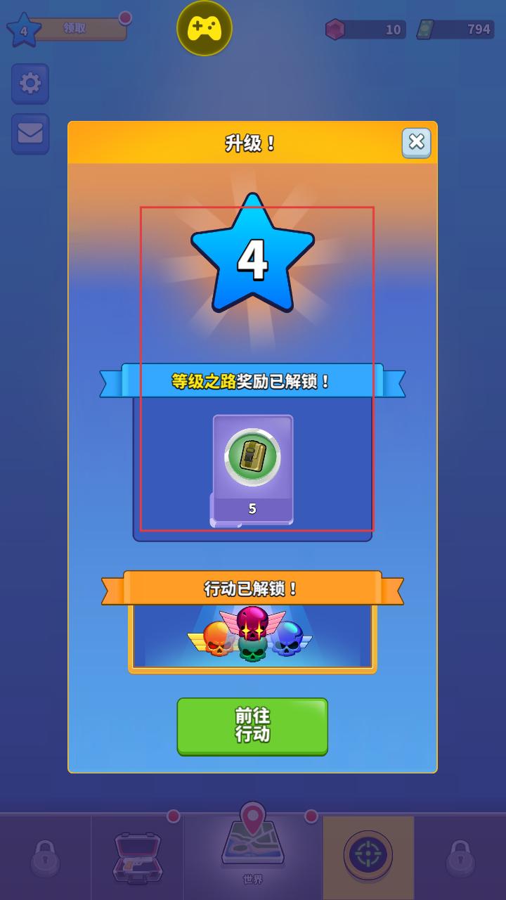 4、升级到4级时会解锁等级之路奖励和新行动,界面显示等级之路奖励已解锁,可点击前往行动继续游戏,提升等级解锁更多内容。