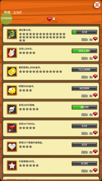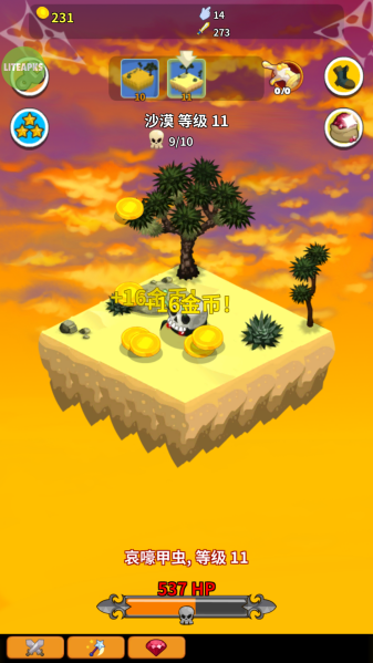 2、自适应关卡设计:2500+关卡依玩家DPS调节怪物血量,每100关设特殊魔王战,部分BOSS可反弹点击伤害。