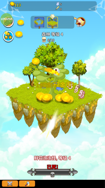 2、收集资源积累:击杀怪物自动获取金币,优先拾取掉落奖励,为后续雇佣英雄储备初始资源。