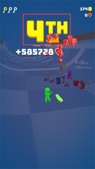 4、比赛结束后,显示4TH排名和585728得分奖励,可继续挑战提升名次,收集更多奖励,享受独轮竞技的乐趣。