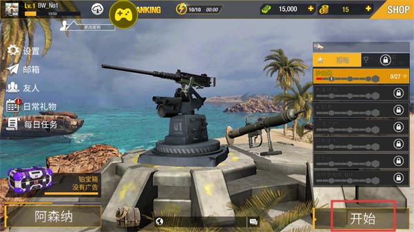 4、在主界面点击开始按钮,进入海滩战场,开启抵御海陆空敌人攻势的防御射击挑战,体验二战背景的战争乐趣。