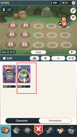 1、在角色界面可选择Lv1的英雄卡牌,进行阵容配置,为后续战斗组建合适的动物战士队伍。