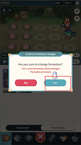 2、调整阵型时会出现确认窗口,点击Yes按钮即可更改当前阵型,战斗也会随之重启,需谨慎操作。