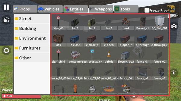 3、使用PhysicsGun物理枪,操控游戏中的各种物体,借助物理机制开展建造或互动,体验真实物理模拟的沙盒乐趣。