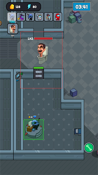 3、在飞船场景中遭遇LV2的敌人,利用已布置的防御设施,对抗敌人的攻击,维持自身的生存状态。